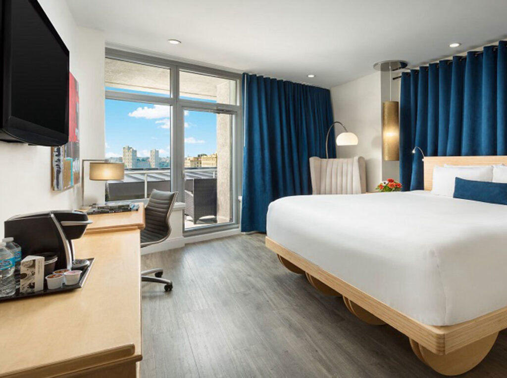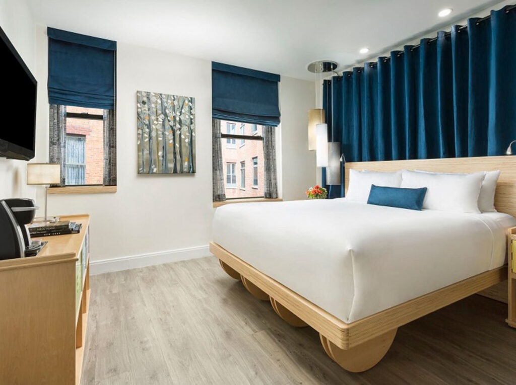 およそ100年にわたり、威厳のある石とレンガでできたそのアッパーウェストサイドの建物は、プライベートマンションだったりミッドレベルのホテルまで、多くの変化を遂げてきました。2013年にテキサスに本拠を置くNYLOチェーンが最初のニューヨーク物件としてリキャストされ、概観も中味も全面改装されました。そして2019年、この建物は、“The Arthouse Hotel”として新たにブランディングされたのです。