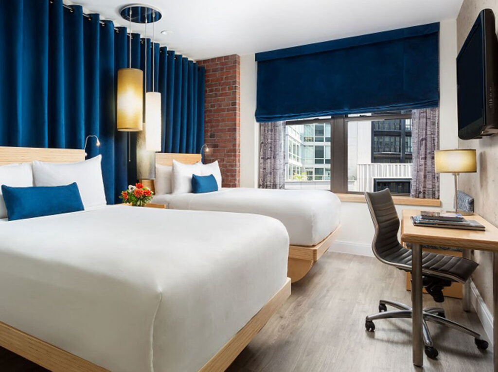 NYの典型的なヴィンテージの建物ですから、客室は驚くほどは広くありません。23㎡の標準的な部屋から、広めのテラスがある47㎡のスイートまで、さまざまな形とサイズの部屋が用意されています。明るい客室は、北欧の雰囲気が漂う現代的なアップタウンのロフトのようです。