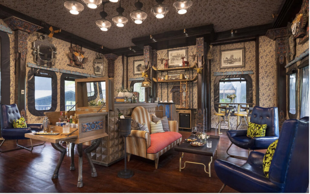正面のポルチコに足を踏み入れると、香辛料貿易行が行われていた探検家の時代に戻ったかのような、臨場感あふれる劇場体験の始まりです。ベンズリーは、マルコ・ポーロの中国からインドネシアへの遠征や、バリのホワイト・ラジャと呼ばれた19世紀のデンマーク人探検家、マッズ・ヨハンセン・ランゲ(彼の名にちなんだレストランもあります)からインスピレーションを得ました。到着時には、日焼け止め、虫除け、地図などのサバイバルキットと、海水のプランジプールを備えた22の黒いキャンバス地のテンティッドキャンプに続くワイルドな吊り橋を渡るための、彫刻が施されたステッキが渡されます。