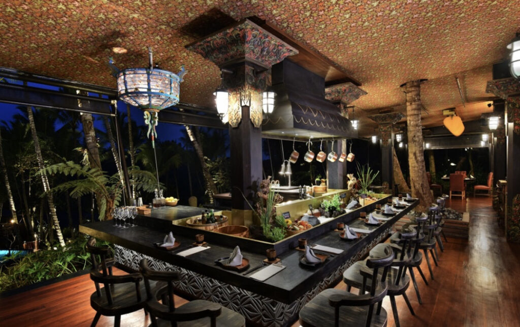 ダイニングには2つのレストランがあります。「アピ・ジワ(Api Jiwa)」は、日本風の炉端焼きレストランで、8~10コースのテイスティングメニューがあり、魚介類や肉類を鉄板で炙り、スパイスで調理してくれます。