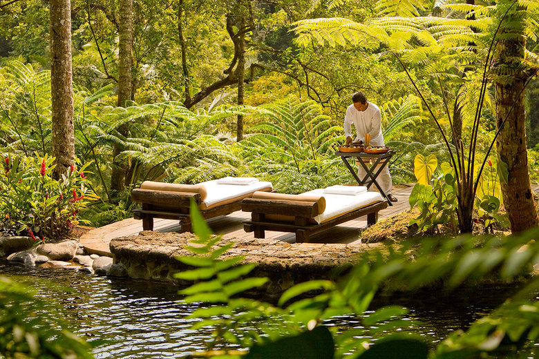スパ施設は2エリアに分かれ、メイン・トリートメントエリアの“オジャス”(“生命の源”の意)には9室のトリートメントルームがあり、ヴァイタリティ・プールも併設されています。長い階段を下りたアユン川のほとりには“クダラ”(“ウォーターガーデン”の意)には、4つのスパパビリオンやピラティスのスタジオがあり、天然の湧水を使ったプールなど、パノラミックな自然が広がります。大自然に囲まれた絶景の中での贅沢なスパ体験は忘れ難いものになるでしょう。