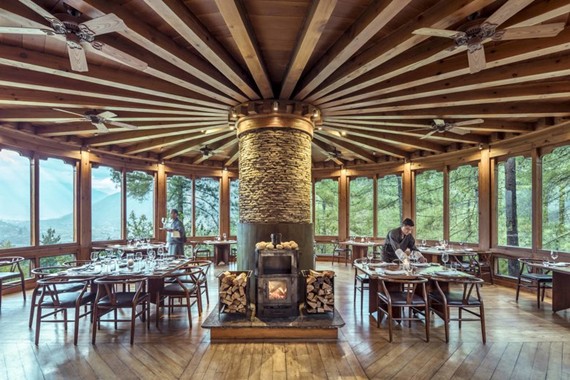 レストランは、メインロビーの横に「ブカリレストラン」という円形のお洒落なレストランがあり、ゲストを迎えます。真ん中にどんとしつらえられた大きな暖炉が印象的です。ディナーはコース料理もあり、ウェスタンとブータン式があります。