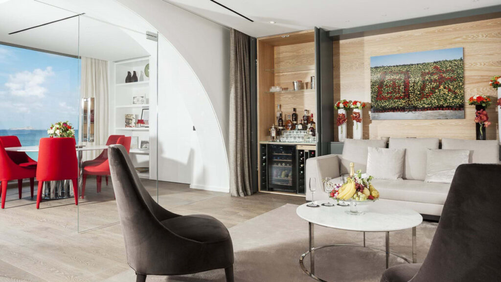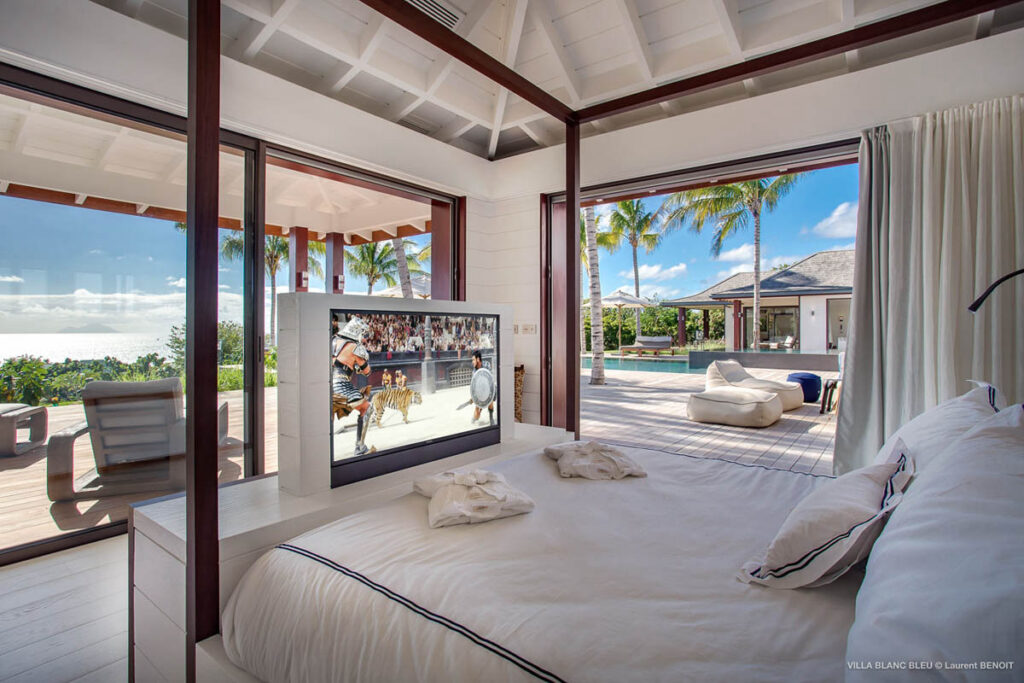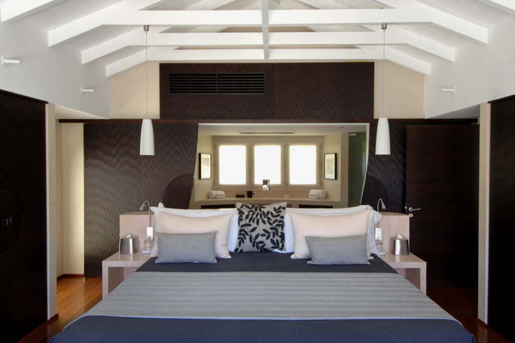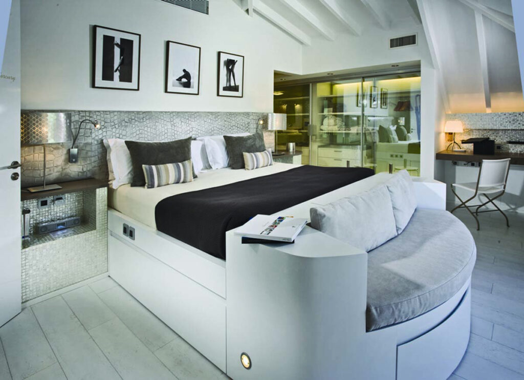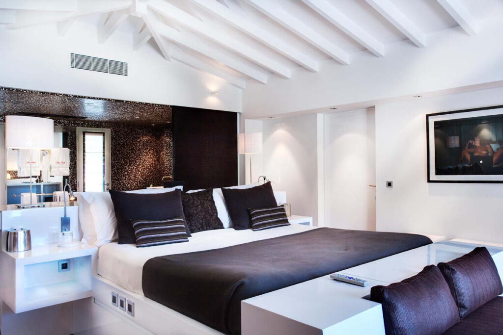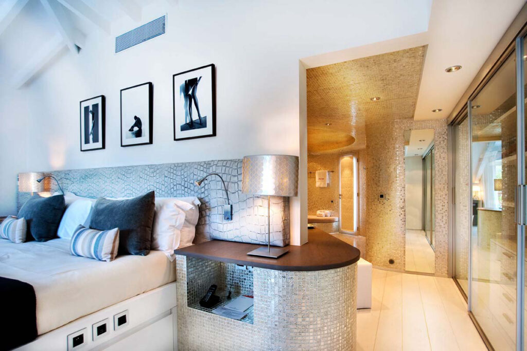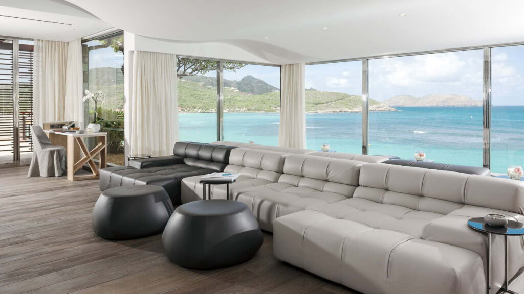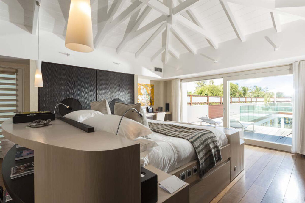 それぞれのゲストルームは、ビーチや岩場へのダイレクトアクセスが可能なスイートタイプとなっており、どの客室からも目が覚めるような紺碧のサンジャンの海と白い砂浜をのぞめるオーシャンビューは、そのこと自体がホテルの自慢でした。スイートルームのほかにも贅を尽くしたレンタルヴィラが100戸以上あります。