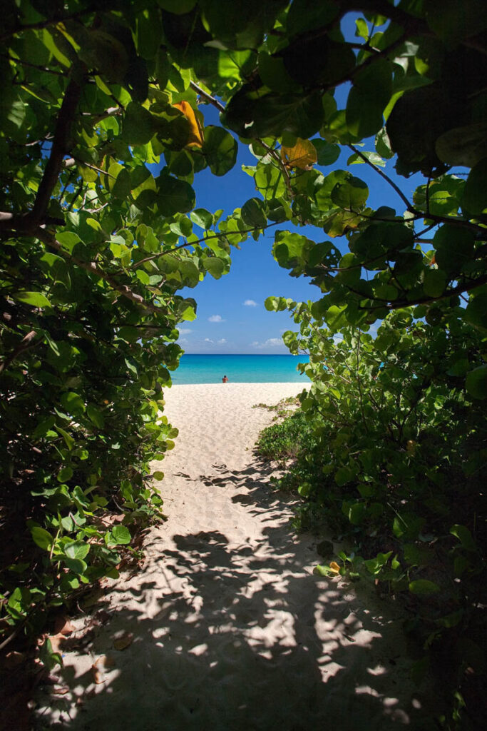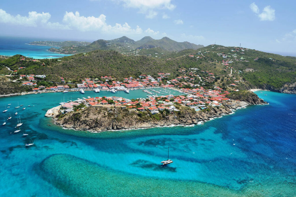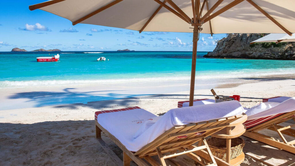軽飛行機のみが離発着可能な短い滑走路だけの空港がそばにあるサンジャン湾と湾に沿って広がるホワイトサンドビーチは、島で最も美しく長閑な場所です。湾の中央に突き出た巨大な岩がエデン・ロックの名前のもとになっており、この岩の上と周囲のビーチにプロヴァンス風のホテル本館、ヴィラ、レストラン、ビーチクラブなどが点在しています。