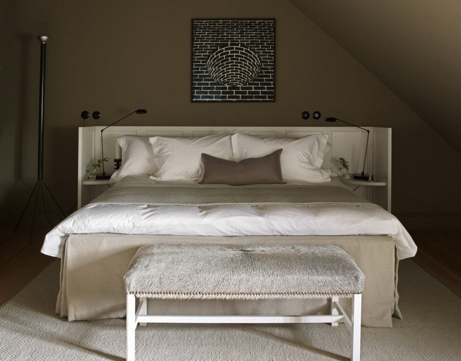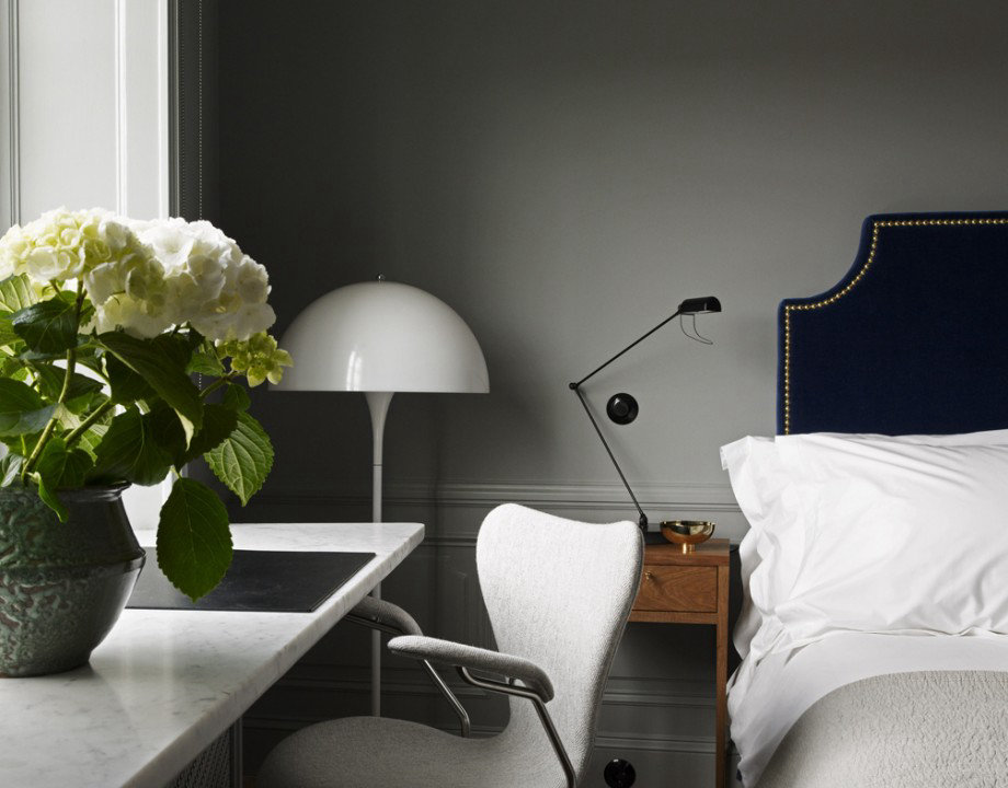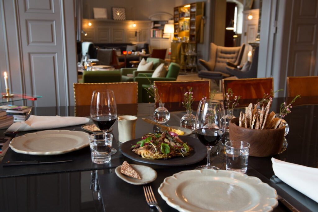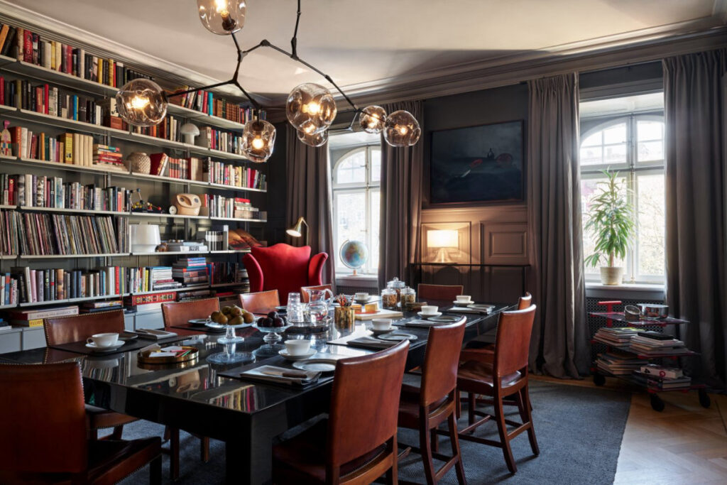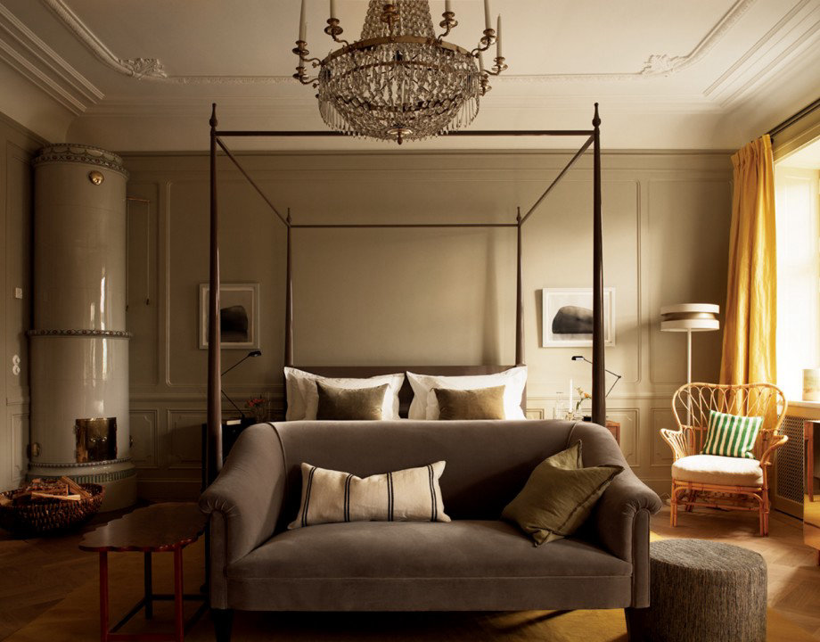 12室の個性的な客室を備えたエット・ヘムは、目の肥えたゲストたちに快適なインテリアであふれた部屋を提供しています。シャンデリアからろうそくの灯りが見えるかと思えば、ロンドンの有名デザイナー、マイケル・アナスタシアデスのライトがあったり、デンマークのモダンデザインの父ともいえるコーア・クリントの椅子がさりげなく置かれていたりします。アートにうるさい北欧らしい注意深い配慮が館内に見てとれます。