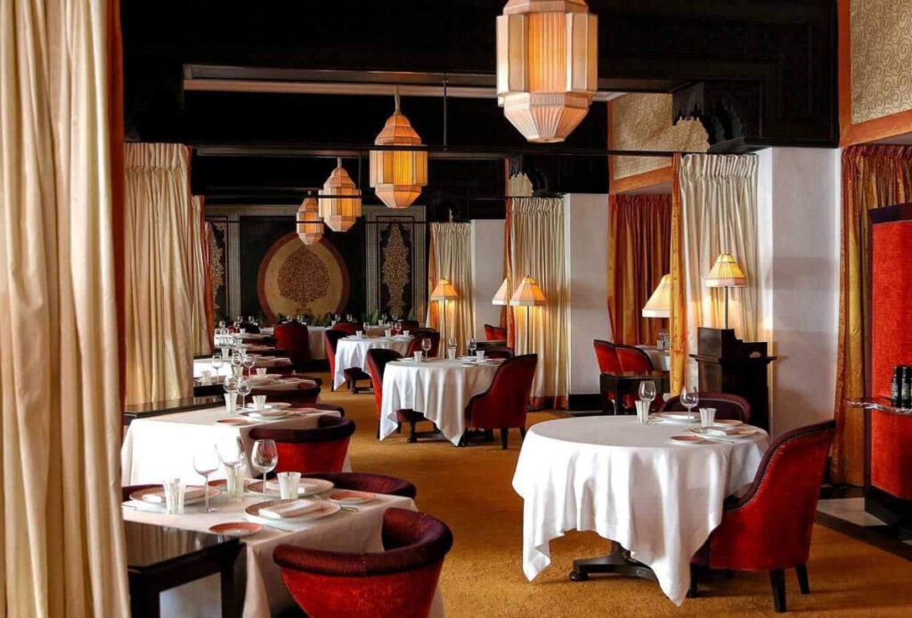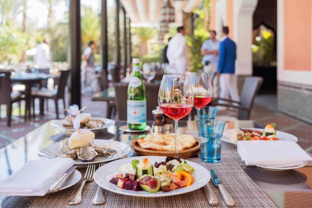 レストランは4つあります。まずモロッコの伝統料理と現代風にアレンジされた創作料理を供する「ル・マロケイン」。ランタンのほのかな灯りのなか、エレガントなフレンチをいただく「ル・フランセ」、高級感あふれるイタリア料理の「リタリアン・バイ・ドン・アルフォンソ」、そしてオールデイダイニングを楽しめるプールサイドの「ル・パビリオン・デ・ラ・ピスィン」の4店です。