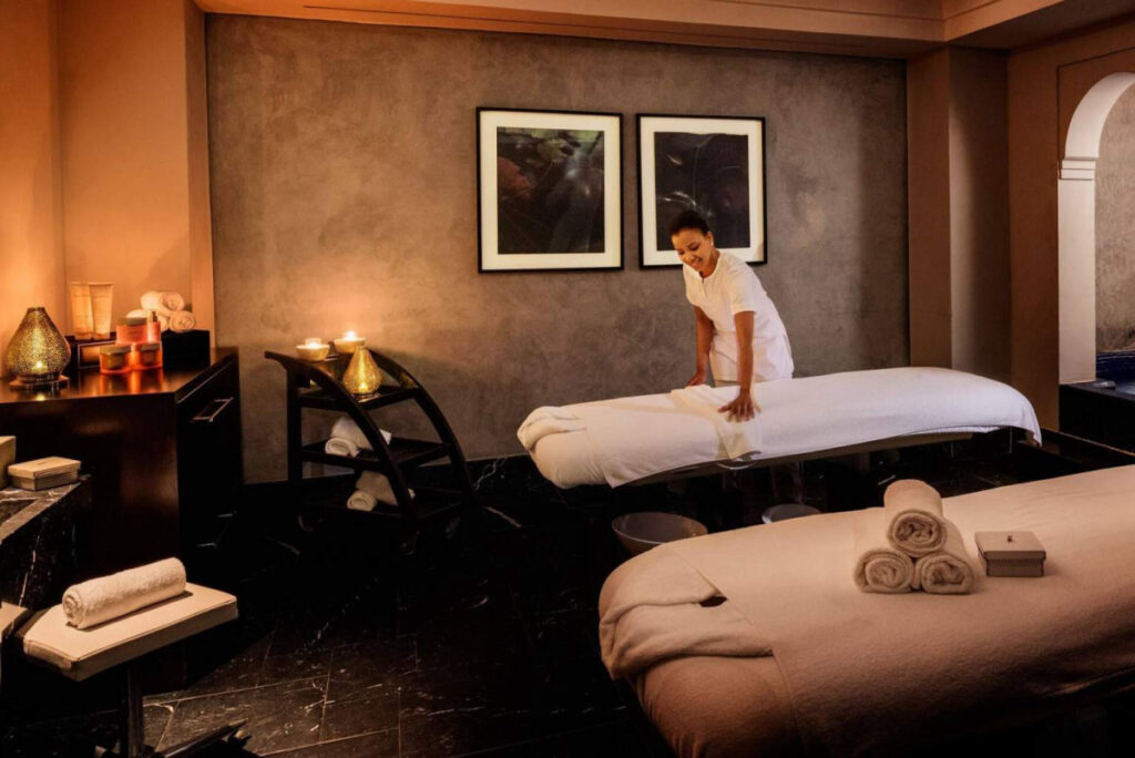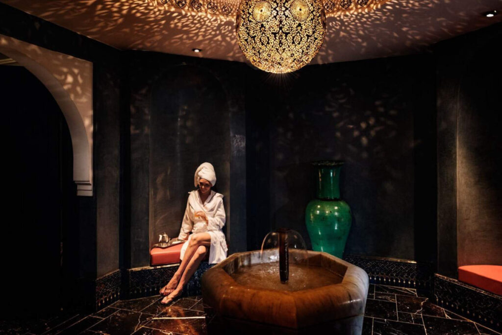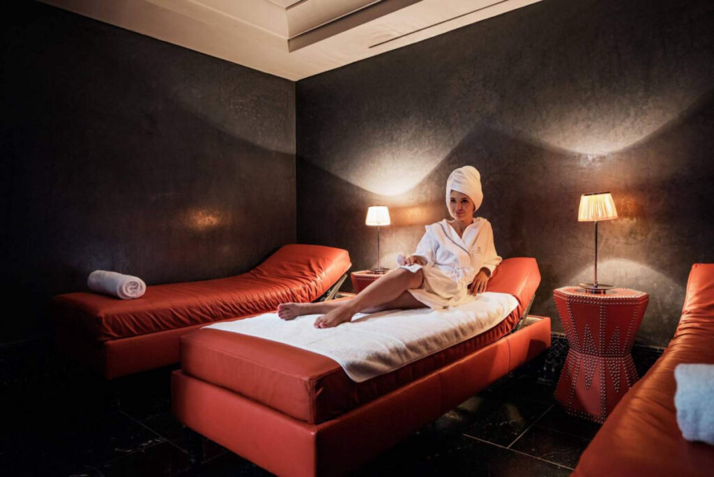 また、2,500㎡の広さを誇る自慢のスパは、モロッコとオリエントの文化が見事に溶け合った雰囲気のなか、完璧なる癒しと安寧の場を提供しています。ここでは、ハマム、サウナ、ガスール(粘土やサフランなどの天然物を使用したボディケア)、アルガンなど豊富なメニューがそろっています。