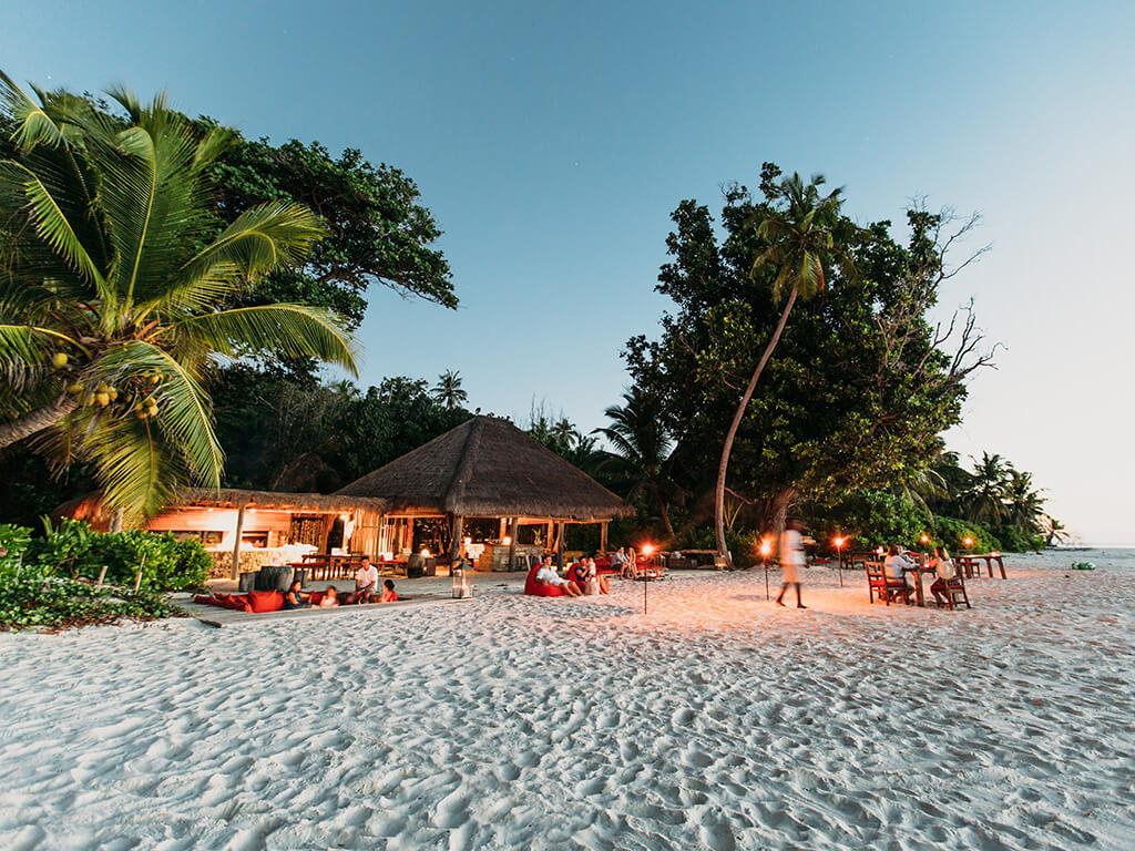 「アイランドピッツア」と「ウエストビーチバー」のふたつのレストランがあります。どちらもビーチで足先に砂を感じながらの食事を楽しめます。メニューは日々変わりますから、ゲストの好みによってシェフにオーダーできます。夕陽の時間には「スパヒル」の「ザ・クロス」に出かけてシャンパンとカナッペを楽しみましょう。ロマンチックな午後にはハネムーンビーチにプライベートピクニックに出かけましょう。またライブラリーでは特別なクレオールディナーが提供されますし、ワインセラーではプライベートなワインテイスティングやヘリパッドで星を眺めながらのキャンドルライトディナーも素敵です。