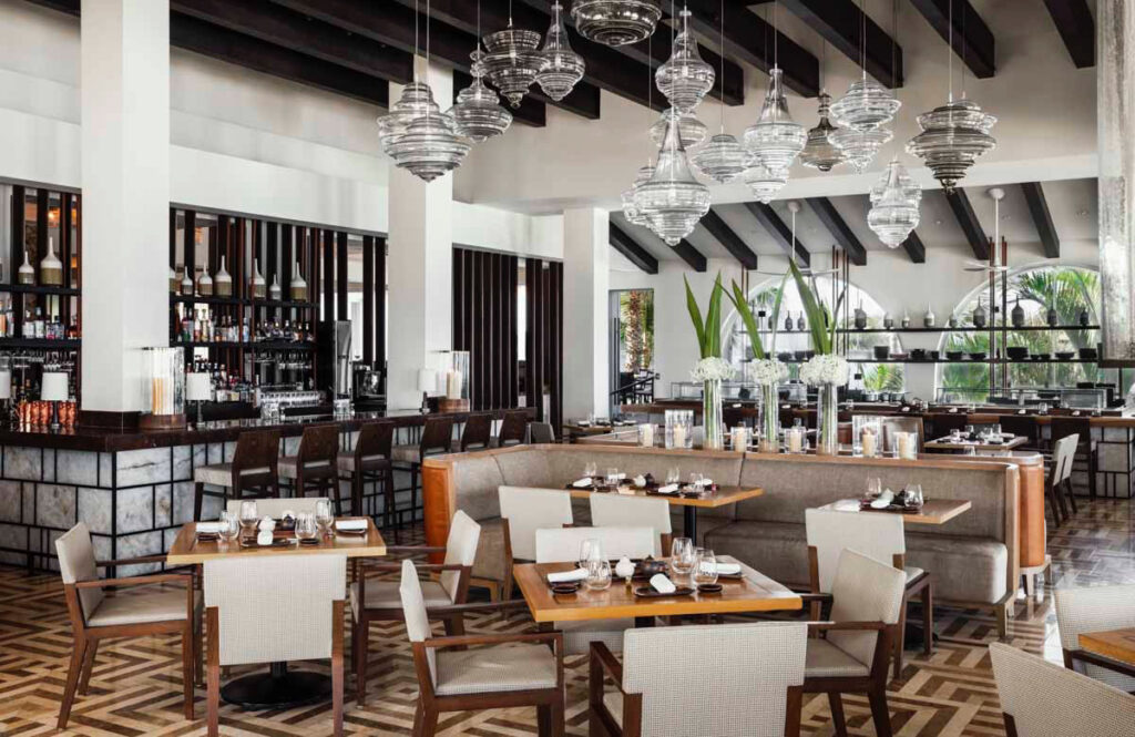 ダイニングはまず「シアード」と「サヴィーチェ」です。かのジャン・ジョルジュ・ヴォンゲリヒテンが指揮するレストランです。ステーキハウスの「シアード」は肉族でなくてもお試しになることをお勧めします。特にここのフィレミニオンはお忘れなく。「サヴィーチェ」は日本人職人が握る寿司を始め、メキシカンジャパニーズなメニューが揃っています。日本からの空輸と地元バハで獲れた新鮮な魚を使った刺身は絶品。「アグア」は地中海メキシカンのメニュー。ヴェジタリアンフードも豊富です。プールサイドにはオールデーダイニングの「ブリーズ」があります。