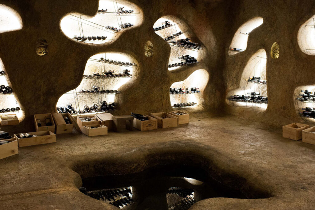 ワインセラーに保管される350種類以上のワインの50%はオーガニックかビオデナミというこだわりようです。