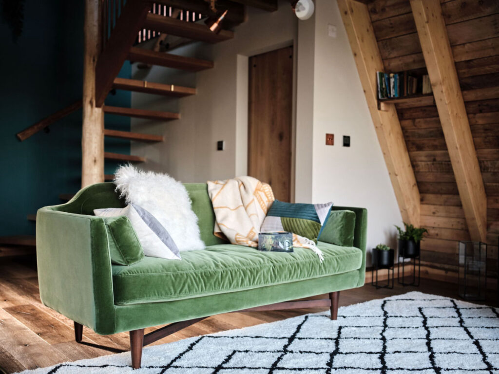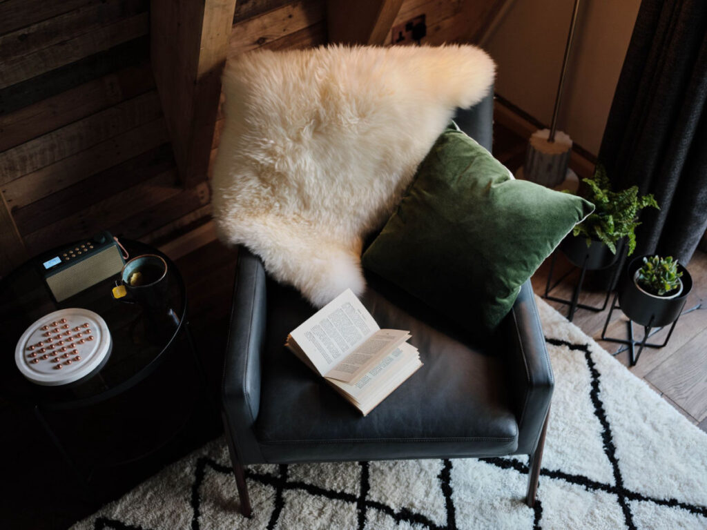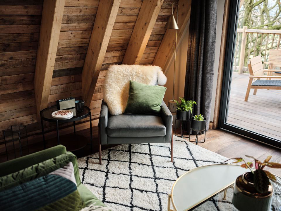 ややレトロな雰囲気の居心地の良い”森の中のキャビン”は、MADE.COMのデザイナースタイルで豪華にデコレーションされており、素晴らしくリラックスした滞在を約束してくれるための必需品が揃っています。吊り下げ型のバイオエタノールを使ったコクーンエアリス暖炉は、スカンジナビア風のバイブでラウンジに穏やかな輝きを創り出してくれます。また、床暖房も完備されており、季節を問わず心地よい室内で過ごすことができます。
