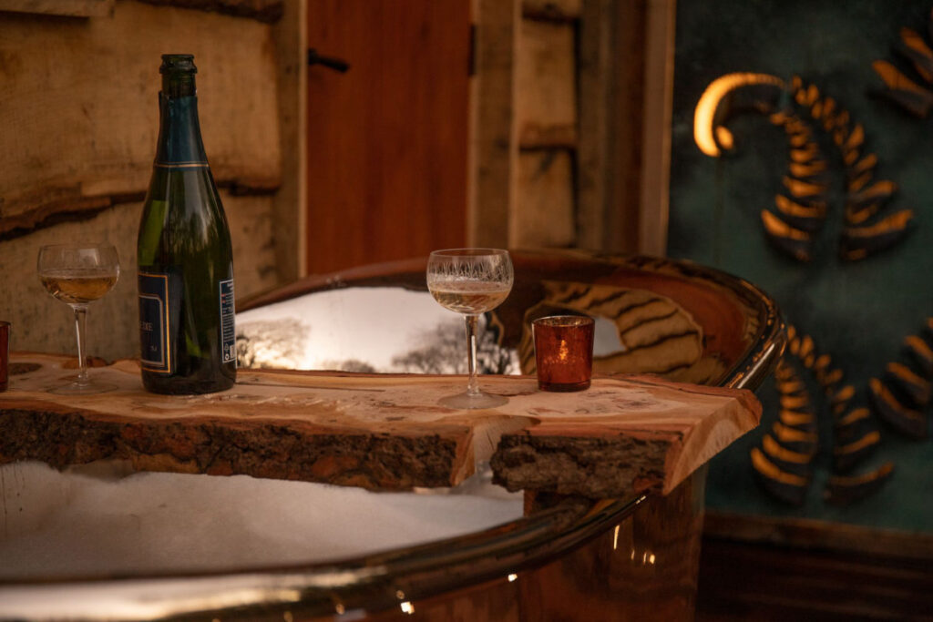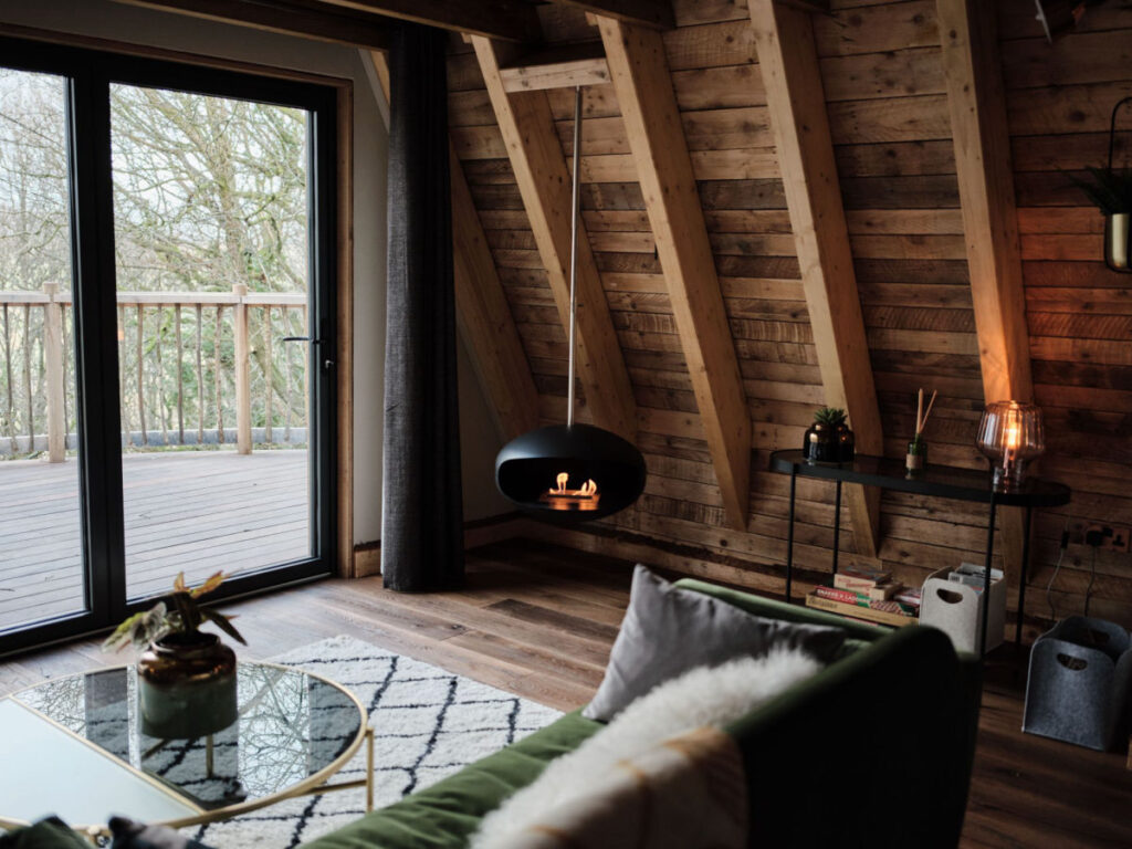 いま流行りの高級グランピングともいえるこのツリーハウスは、英国では最初にできた部類の施設となります。屋外で星空を眺めるためのコパーバス、豪華な屋内ウェットルームとバスルーム、設備の整ったキッチン、暖炉のある居心地の良いラウンジ、中二階メザニンのベッドルームからのツリートップビュー、キャンプファイヤーを楽しめる屋外暖炉も用意されています。今日のハイテク機器やテレビに邪魔されることなく、完全にスイッチをオフにできるよう注意深く気配りがされています。