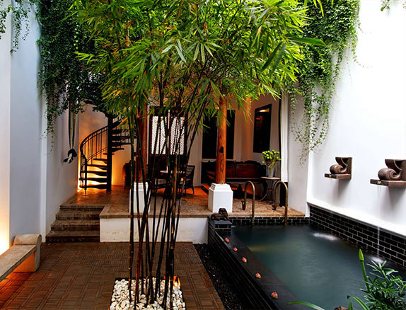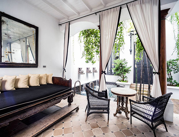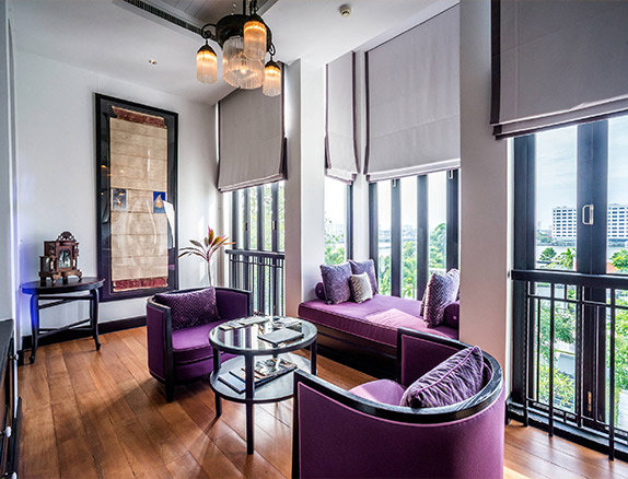 2012年、バンコクにオープンした注目のラグジュアリー・アーバンリゾートホテルがザ・サイアムです。チャオプラヤ川のほとり、歴史的地区に位置し、3エーカー(約1万2千㎡)の広大な敷地に39室のスイートとヴィラタイプの客室を擁しています。ホテルのオーナーはタイの名門、スコソルファミリー。スコソル家の女性家長で、社長のカマラ・スコソルはかつてタイを代表するジャズシンガーでしたが、いまやマルチな才能を発揮するタイ有数の企業家です。息子でクリエイティブ・ダイレクターのクリサダ・クラップは、著名なロックスターにして映画俳優です。タイの名門ダイナスティによるホテルゆえ、ハードからソフトまで高貴なるアンビアンスに満ちています。