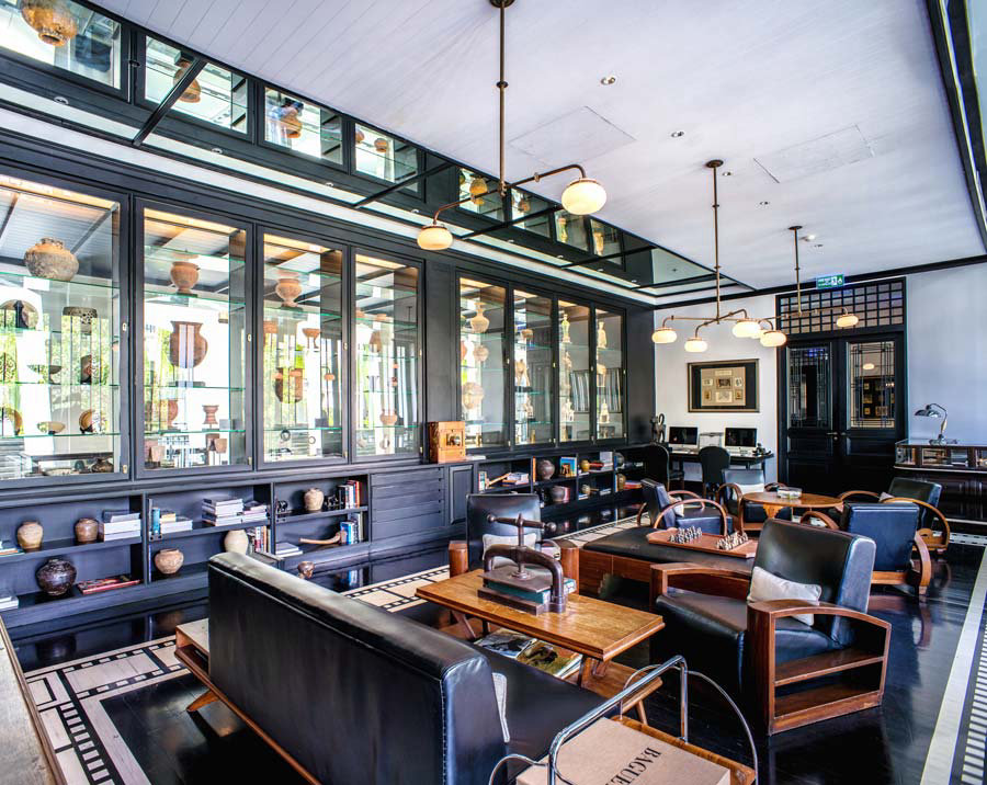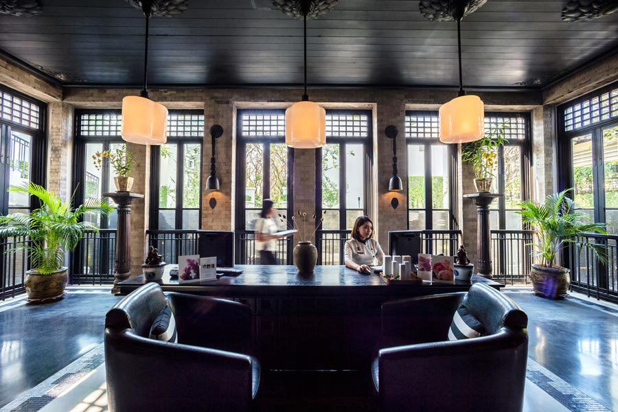 ザ・サイアムのデザインは世界的に有名な建築デザイナー、ビル・ベンズレーによるもので、アールデコにインスパイアされた空間を、スコソル家が所有するアートやタイのアンティークの数々を使い、見事に演出しています。
