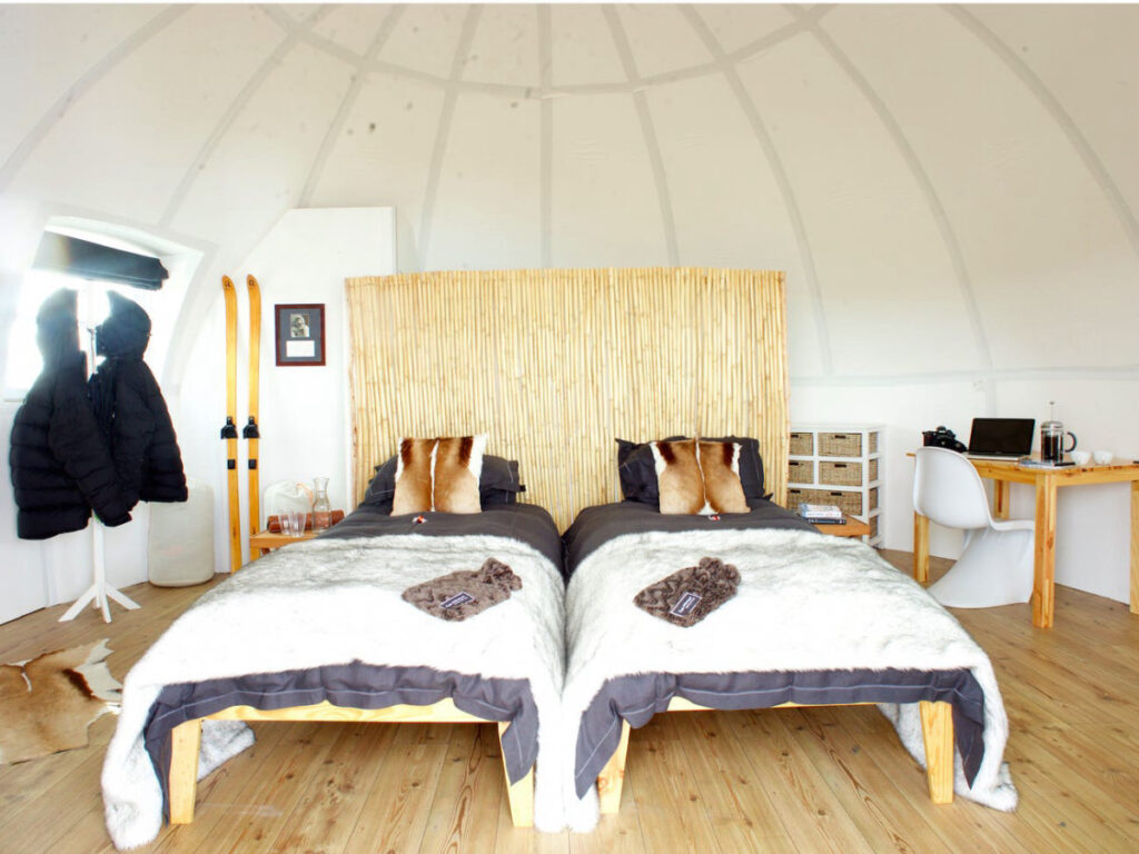 ここにはエコフレンドリーなファイバーグラスで造られたゲストハウスが6棟用意されています。極寒の外とは別世界、なかはとても温かで快適です。もちろんバスルームも完備。