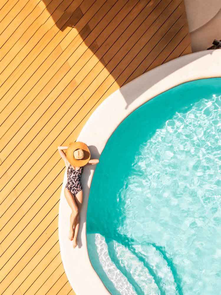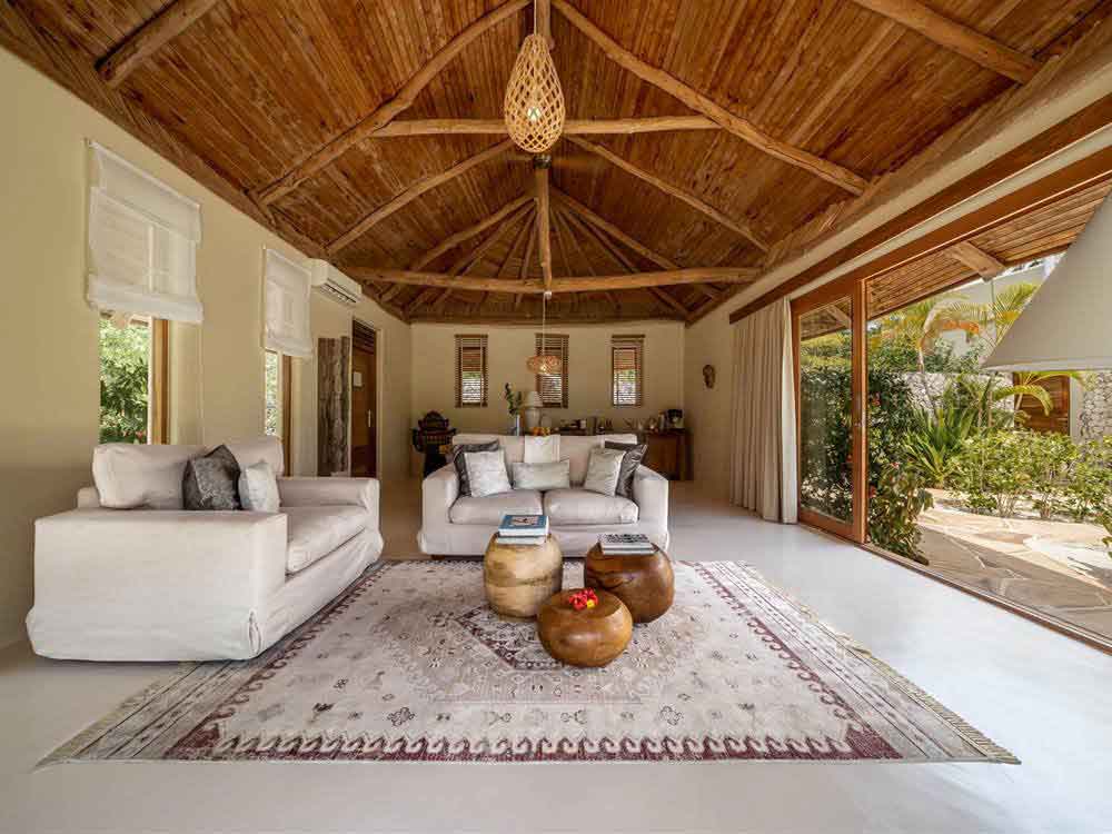 プールで花が飾られたカラフルなフローティングブレックファストで一日が始まり、夜は南半球の星座を見つけることで終わります。ヴィラの内部も壮観で、自然素材の軽やかで明るい色調が特徴です。多くの家具(テーブル、椅子、ベッド)は、地元の職人が手作りしています。