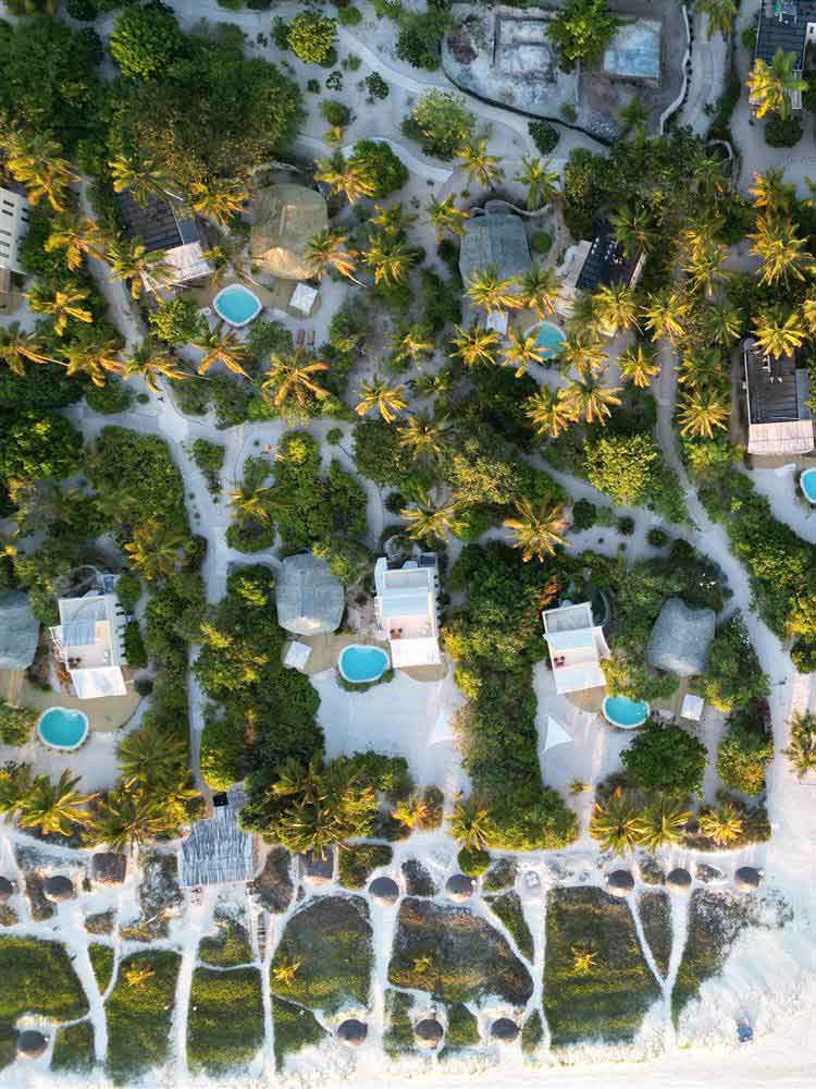 ホワイトサンドがタンザニア(そして世界全体)に与えたもう一つの持続可能な影響は、注意深く管理されたカーボンフリーフットプリントです。ニズニク一家の最初の取り組みの一つは、使い捨てプラスチックをすべて取り除くことでした。しかし、ガラス瓶で飲料水を提供するサプライヤーが見つからなかったため、彼らは独自の淡水化プラントを作り、ガラス容器に入れたフィルター処理されたミネラル質の水を生産し始めました。他の持続可能な取り組みとしては、風力と太陽光エネルギー、地元で毎日収穫される海藻から手作りされた石鹸、リゾートの庭園や近隣の農家から調達された材料、地元の漁師によって毎日捕獲される新鮮な魚などがあります。