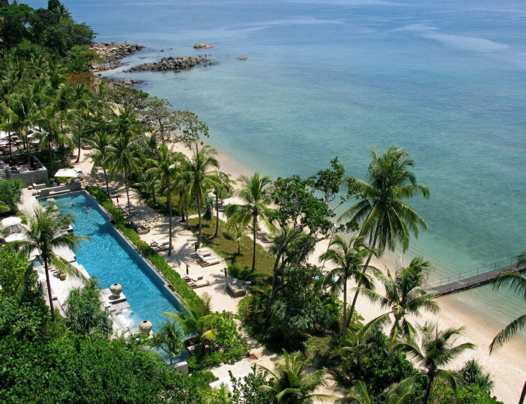 ご存じプーケット島で最高級のプライベートリゾート、トリサラです。鮮やかな青色のアンダマン海と、何世紀にわたり樹齢を重ねたイチジクの木やココナッツの木、クジャクヤシの木々が生い茂る豊かな緑の中、その名の意味する“3番目の天国にある庭”がゲストを待ち受けます。