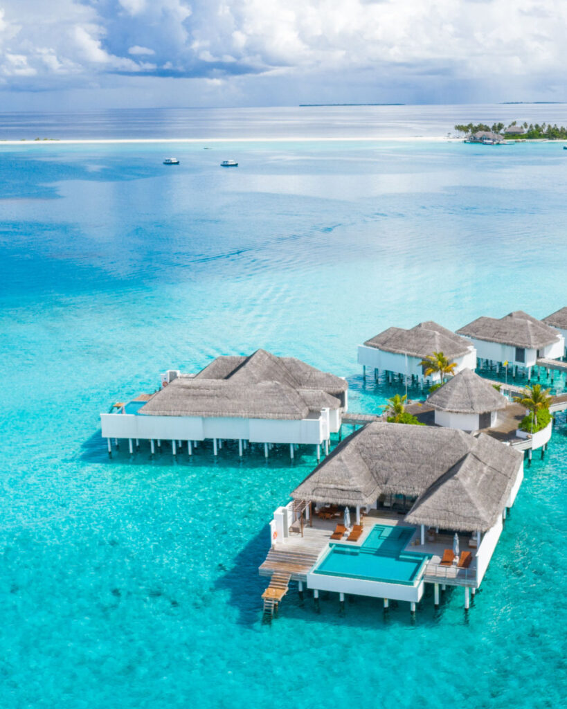 ・ エントリーレベルでも水上ヴィラ(145 ㎡)に滞在できます。モルディブは1島1リゾートなので、密の心配はまったくなし!